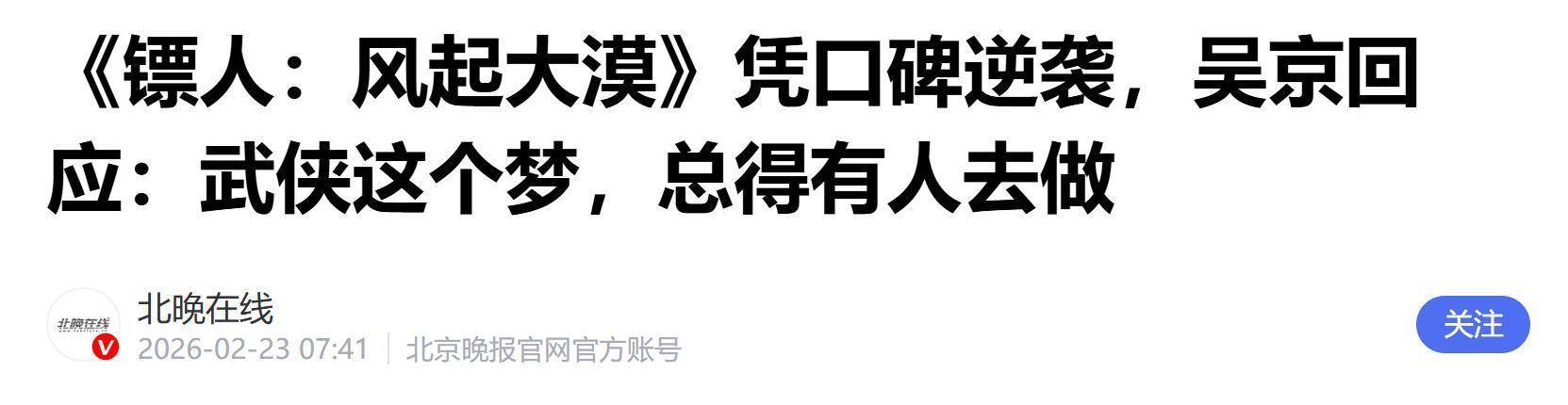 2026年春节档,《镖人:风起大漠》票房突破8亿大关。
